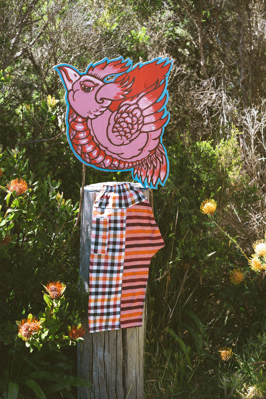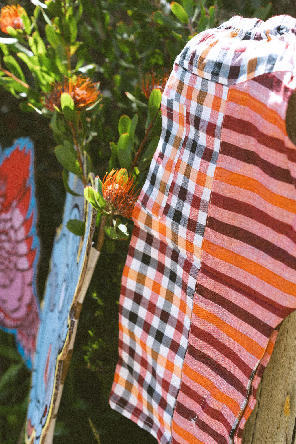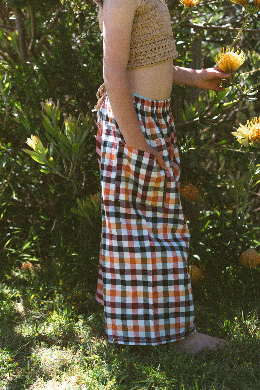 Robust, light-weight, stress-free. The Little Cousin signature fisherman pants are comfy, have a box silhouette for moveability and airflow, elasticised waist for smooth putting-on and taking-off, three-quarter cut for ploughing through puddles and large pockets for collecting favourite things.